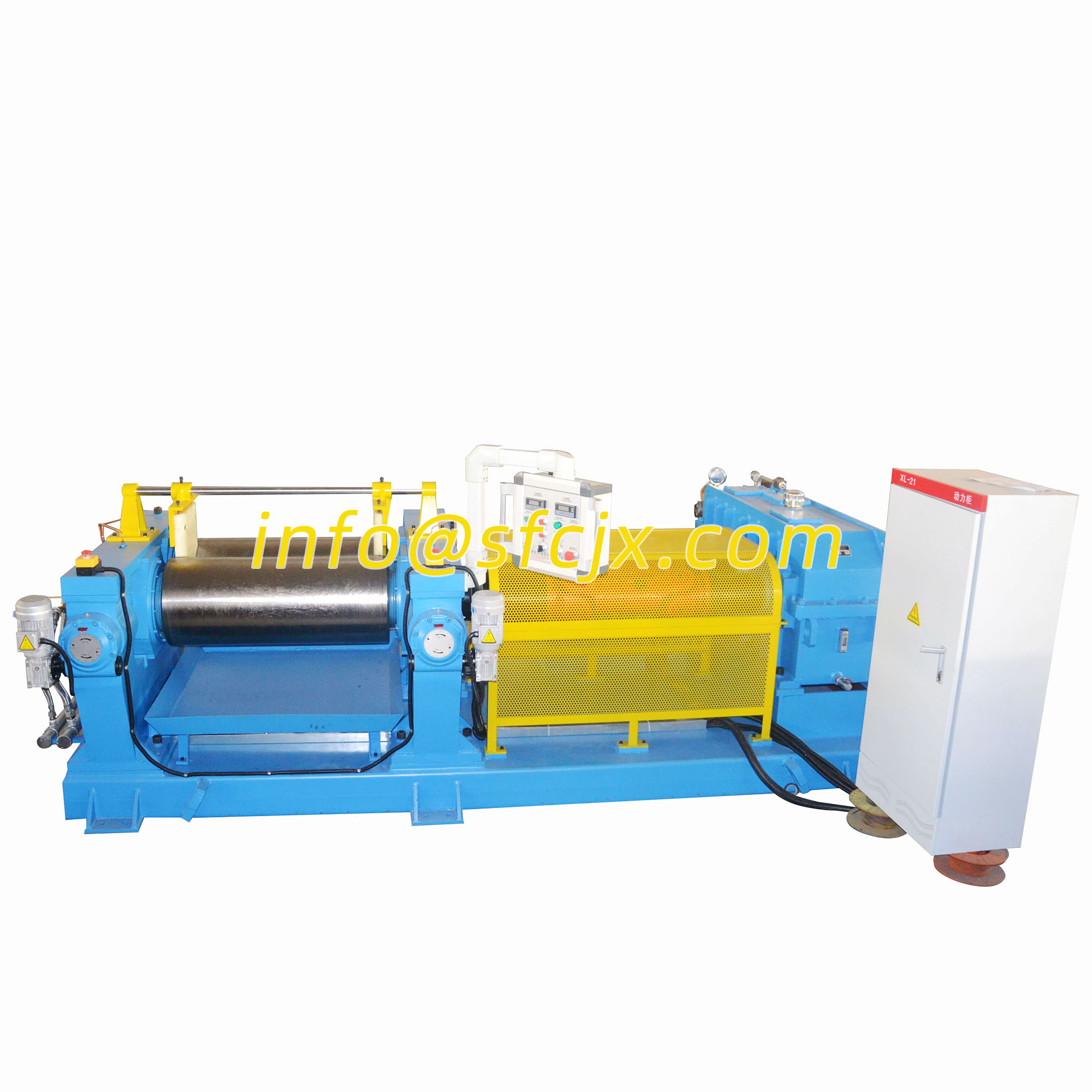 該型號煉膠機采用單電機雙輸出驅動,用于橡膠膠料的混煉、熱煉及生膠的塑煉等。